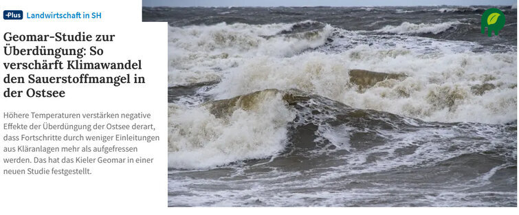 Samstag 21. Dezember/Mittwoch 18. Dezember 2024: Bauern machen die Ostsee sauberer, aber der Klimawandel befördert den Sauerstoffmangel in weiten Teilen der Ostsee shz