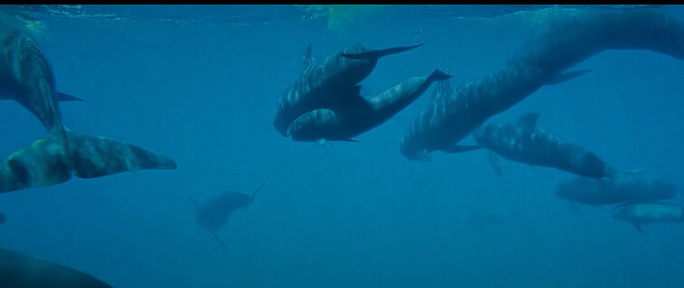 Kommentar: Es sind mehrere Gr. Tümmler (Tursiops truncatus), die sich um die gerade gelandete Kapsel des Unternehmens SpaceX versammeln. Nachdem sie laut Douglas Adams bis dahin „kaum bedeutende Antworten hatten, zu denen ihnen noch Fragen eingefallen wären“, möchten sie nun aber wahrscheinlich wissen, warum es solange gedauert hat. Schließlich hätten Butch Wilmore und Suni Williams ja nur eine Woche auf der ISS bleiben wollen!