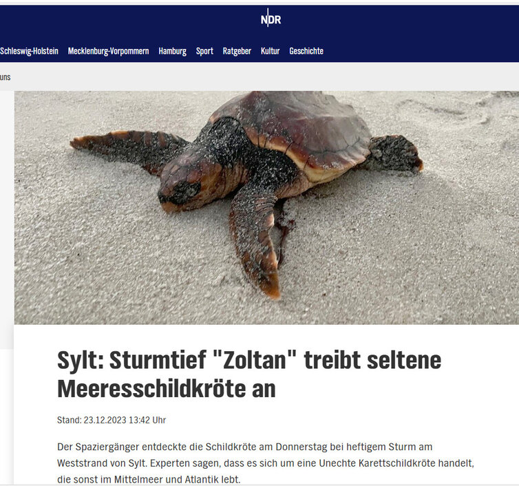 Unter TOP 7 wird mitgeteilt, dass 2023 186 Schweinswale, 100 Seehunde und 37 Kegelrobben durch das ITAW untersucht wurden. Zum Abschluss berichtet Frau Dr. Schick noch über den Lebendfund einer Unechten Karettschildkröte (Caretta caretta, Linnaeus, 1758), die am 21.12.2023 auf Sylt angespült wurde und nach einem Auf-enthalt im Sylt Aquarium am 11.06.2024 in La Rochelle/ Frankreich wieder ausgewildert werden konnte.